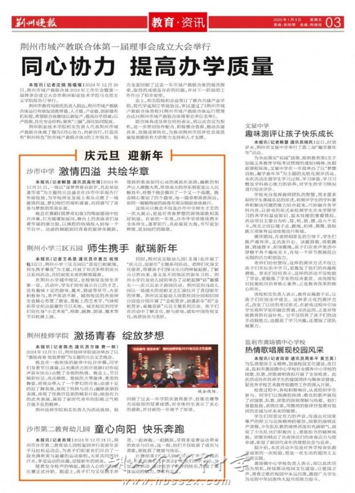 《荊州晚報》2025年1月3日報道我校舉行2025年慶元旦文藝匯演