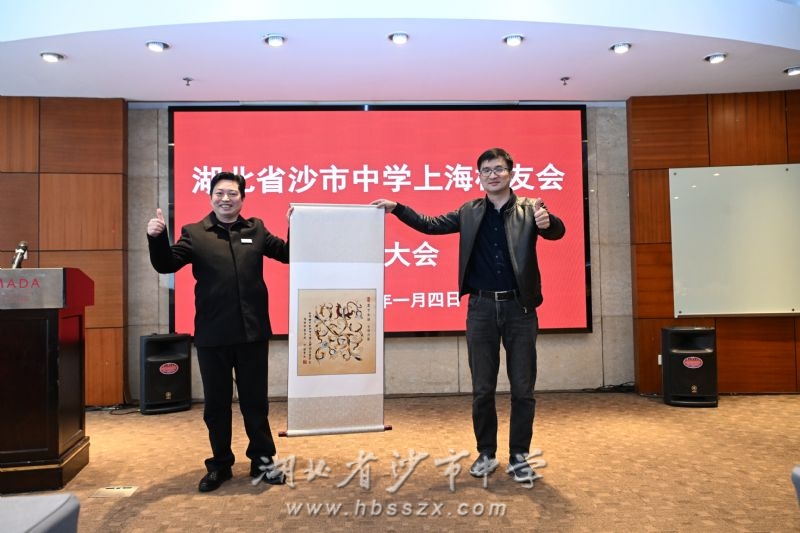 荊州市教育局黨組書記、局長裴毅向上海校友會贈禮并講話 荊州市教育局黨組書記、局長裴毅向上海校友會贈禮并講話,他首先對校友會的成立表示熱烈祝賀,他指出這次代表市教育局出席上海校友會成立活動,深切感受到大家的真誠和對母校的感恩,也讓他對沙市中學的“習坎”文化有了更深的理解。他表示,市教育局會繼續大力支持校友會的工作,期望大家珍惜緣分,因校結緣、因緣友愛、團結凝聚;匯聚源泉,交流思想、資源共享、共謀發展;畫好圓圈,人人出彩、回報學校、回饋家鄉,期待校友們常回家看看。