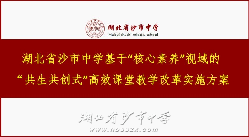 為進一步推動“三新”背景下的課堂教學改革,建立高效課堂,提高教學質(zhì)量,我校依據(jù)新課程改革理念和新高考改革方案,結(jié)合荊州市教科院“學習中心課堂”理念,切合教學規(guī)律,立足教學實際,制定了《湖北省沙市中學基于“核心素養(yǎng)”視域的“共生共創(chuàng)式”高效課堂教學改革實施方案》。