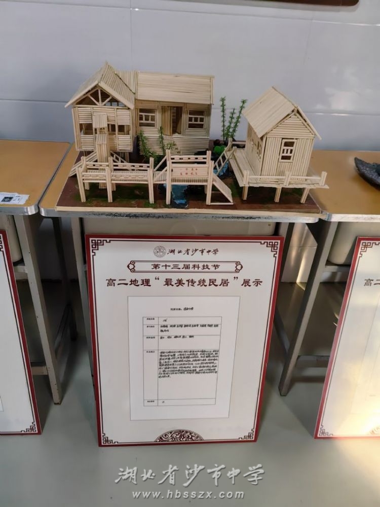 地理組設計“最美傳統民居”手工制作大賽,引導學生從地理視角思考優秀的傳統文化對當今社會經濟發展的影響。“傣家竹樓”“黃土高原窯洞”“地坑院”“福建土樓”“四合院”“徽派建筑”“吊腳樓”等學生作品,獲得參觀師生的一致好評。