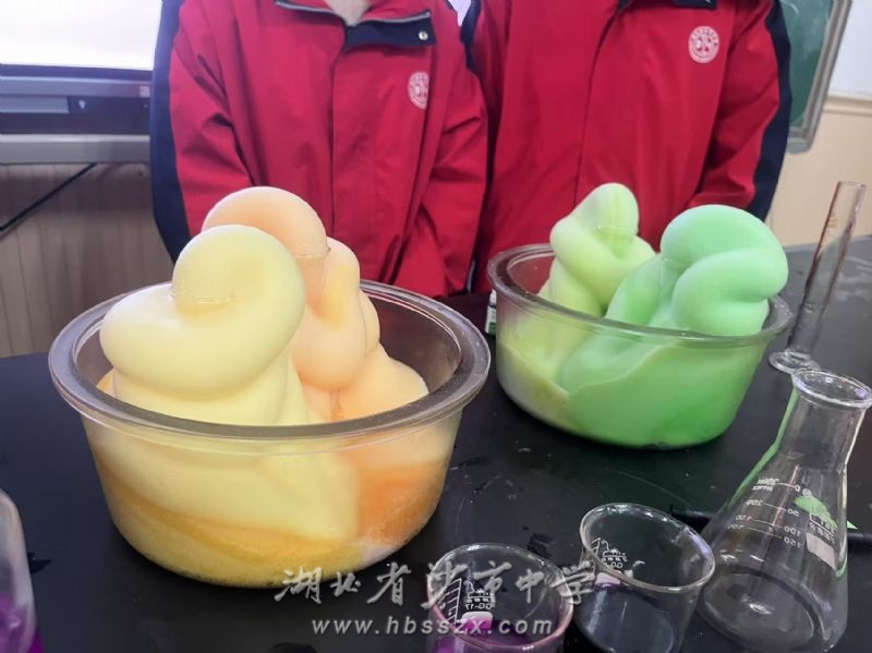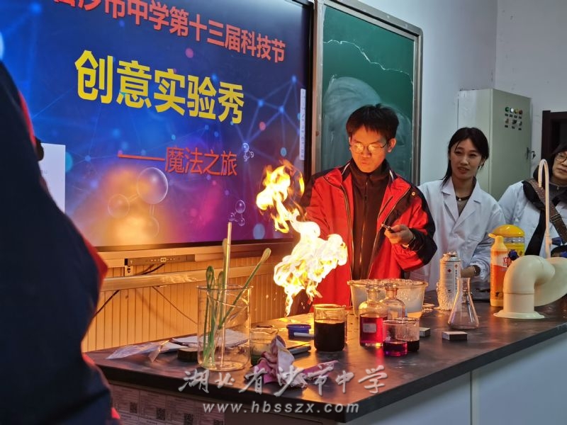 化學組活動精彩紛呈,創意實驗秀設有火焰神掌、大象牙膏、魔法棒棒糖、魔棒點火等項目,化學實驗儀器大比拼設置提問答疑和裝置體驗環節,手工制作創意作品秀展現了學生們的智慧和才華。