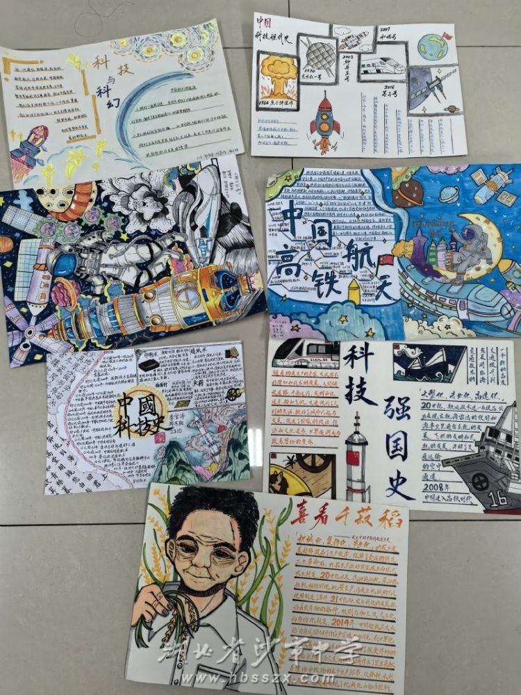 科普黑板報、科幻畫、語文科技征文、英語書法、英語科技手抄報、中國科技史手抄報等作品,充分展現了學生的科技知識儲備和人文素養水平。
