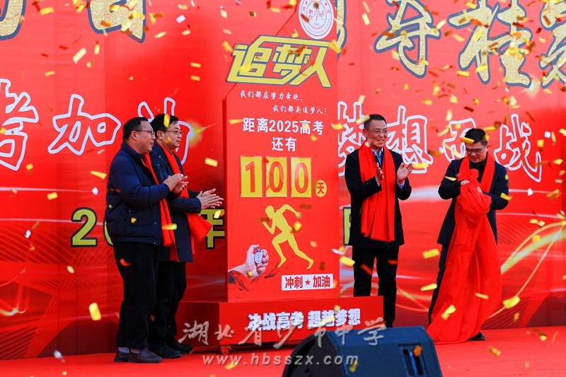 學校領導、高三年級主任共同為“高考倒計時100天”揭牌,金色禮花在空中綻放,這一刻,現(xiàn)場氣氛沸騰起來。