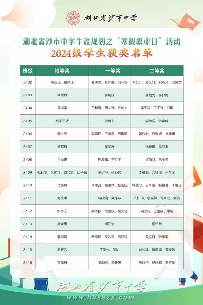 新學(xué)期伊始,學(xué)校對各班提交的《寒假職業(yè)日手冊》進(jìn)行多維度評審。從“目標(biāo)清晰度”、“實踐深度”、“反思創(chuàng)新性”等角度打分,最終評選結(jié)果如下: