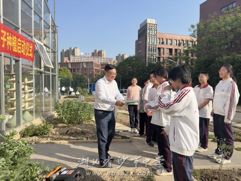 4月7日下午,沙市中學在學校百草園基地舉行了2025年太空種子種植啟動儀式。學校黨委副書記、校長徐善慧,黨委委員、副校長潘磊,教務處副主任杜景泉、百草園負責人徐東平老師、高一年級部分班主任和學生代表參加活動。