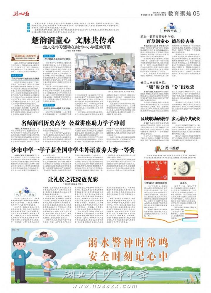 《荊州日報》2025年4月23日報道我校學生獲得全國中學生外語素養大賽一等獎