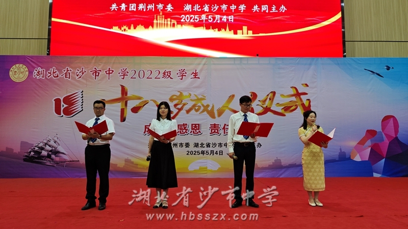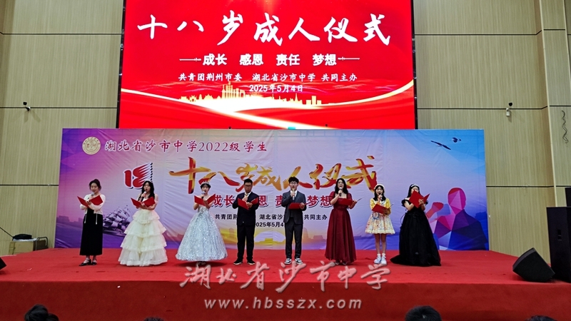 5月4日,立夏將至,萬物蔥蘢。沙市中學體育館內,2022級全體學生與家長攜手步入會場,共同迎接這場以“成長、感恩、責任、夢想”為主題的成人儀式,在青春的節點上鐫刻下莊嚴的成長印記。學校黨委書記熊禮才,黨委副書記、校長徐善慧等領導,全體高三班主任及教師共同見證了這一神圣時刻。