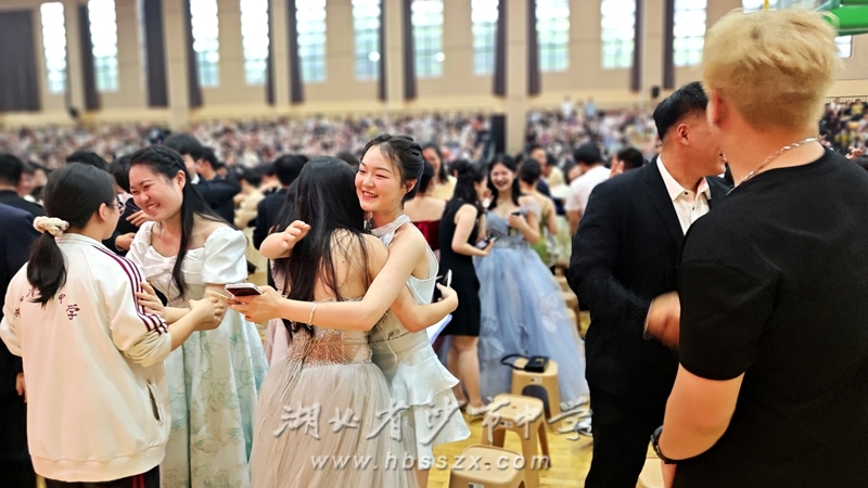 “今天,我們共同迎來18歲,這不僅是年齡的增長,更是對自己、對家人、對國家的承諾——我們將以夢為馬,不負韶華!”隨后,8名學生朗誦《18歲之歌》,“十八歲,是翅膀初展的年紀,是責任在肩的開始……”清朗的聲音回蕩在體育館內,朗誦結束后,全體學生起立,兩列同學互相握手、擁抱,一句“加油”“必勝”,讓青春的友誼在彼此的鼓勵中愈發璀璨。