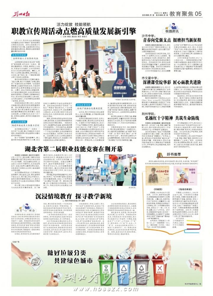 《荊州日報》2025年5月14日報道我校舉行2025年新團員入團儀式暨五四主題團課活動