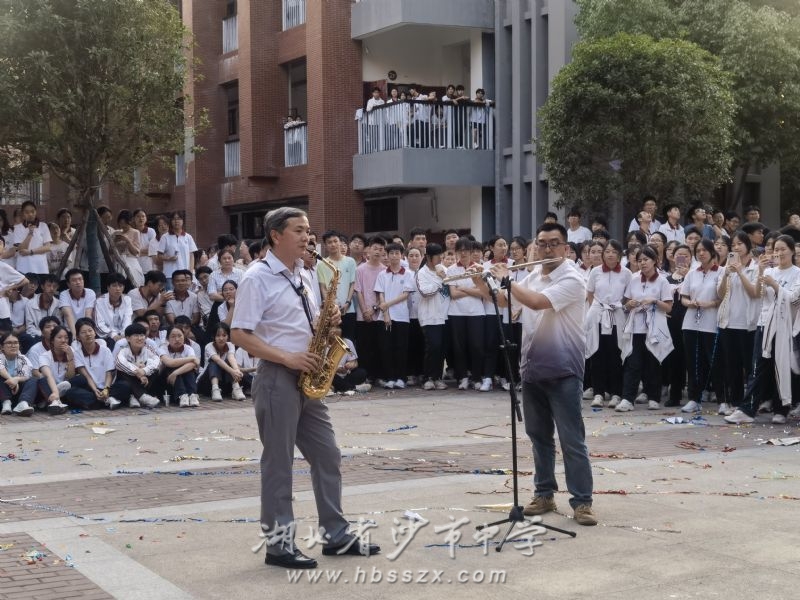 鎮(zhèn)祥平老師和冀李老師帶來的薩克斯與笛子間奏《我愛你中國》,更是將現(xiàn)場的氛圍提升到了一個新的高度,優(yōu)美的旋律中飽含著對祖國的熱愛,也讓高三學(xué)子們在備考的緊張時刻感受到了家國情懷的熏陶。冀李老師發(fā)表了熱情洋溢的高考祝福,鼓勵高三學(xué)子們要充滿信心,勇敢面對高考,在最后的沖刺階段全力以赴!隨后,全體高三學(xué)子們齊聲高喊:“荊州高考看沙中,站在沙中最高峰,我不成功誰成功!”這激昂的口號聲響徹云霄,展現(xiàn)了高三學(xué)子們的豪邁斗志和必勝信念。