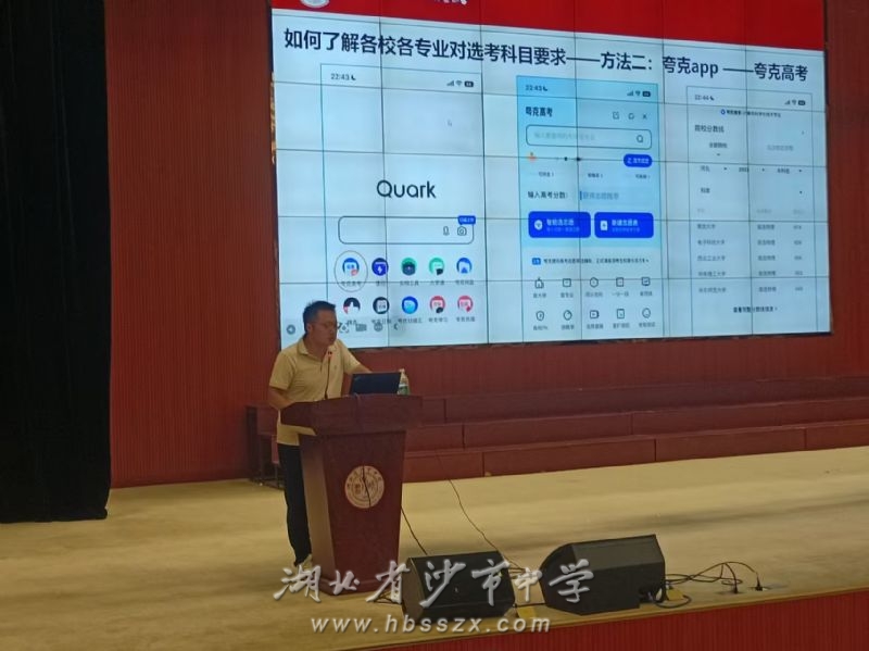 教務處副主任杜景泉 針對新高考背景下的關鍵挑戰,沙市中學黨委委員、副校長潘磊以《新高考下的高中學習》為題,教務處副主任杜景泉以《新高考“3+1+2”模式選科指導》為題共同為家長們帶來了極具指導價值的高考選科政策解讀及學法指導。他們深入剖析了新高考政策的核心要點,結合實際案例,為家長們提供了科學選科的策略建議與切實可行的學習方法指導,有效化解了家長們的普遍困惑,讓新生家長更加科學準確地認識新高考背景下的高中學習。