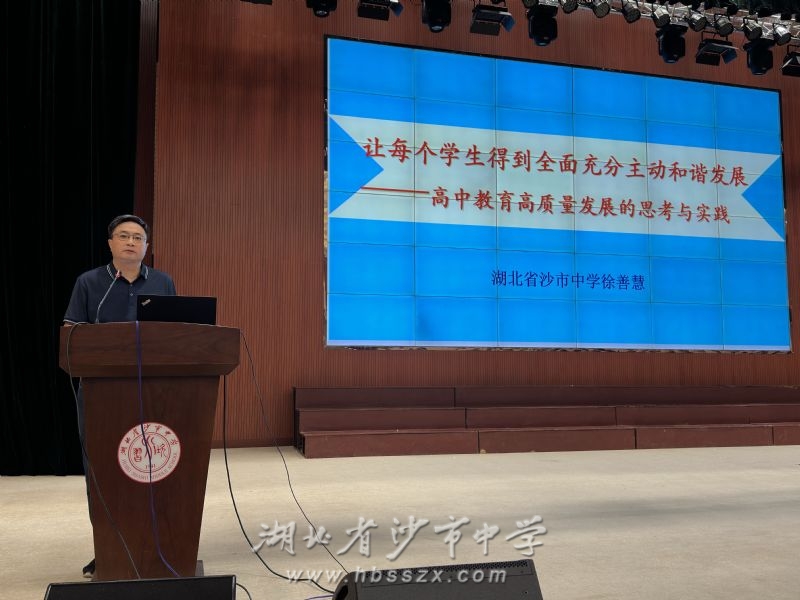 黨委副書記、校長徐善慧 活動伊始,沙市中學黨委副書記、校長徐善慧以《讓每個學生得到全面充分主動和諧發展》為題,全面介紹了沙市中學的歷史底蘊、辦學理念、特色優勢以及我校在追求高質量發展道路上的思考與實踐。他著重闡述了學校“立德樹人”的根本任務與培養新時代優秀人才的育人目標,讓與會家長對學校的整體教育生態有了清晰認知,進一步增強了家校協同育人的信心。