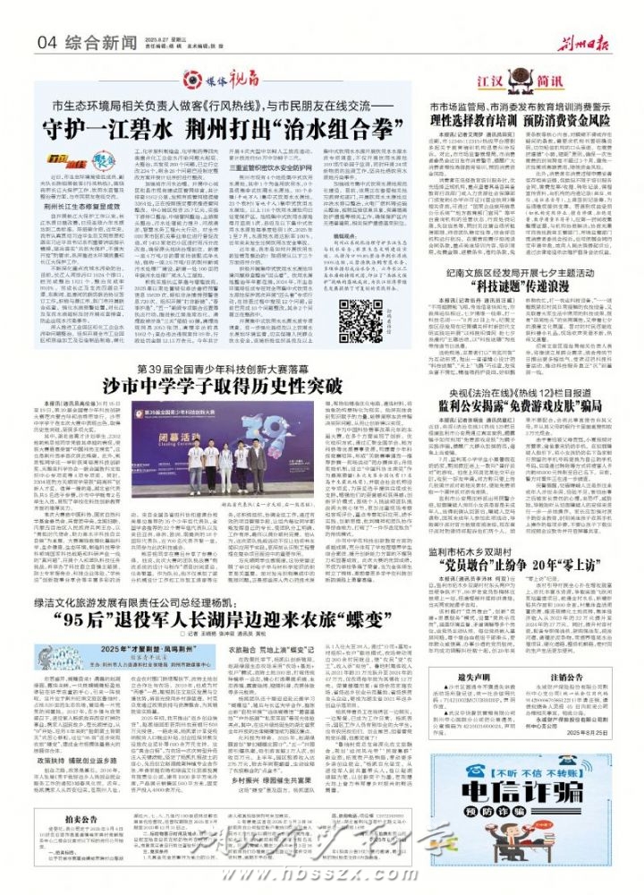 《荊州日報》2025年8月27日報道我校在全國青少年科技創新大賽上取得歷史性突破