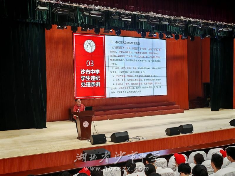 規范行為習慣,筑牢安全防線。學工處副主任王亞東、綜合治理辦公室主任高勝華分別就《沙市中學學生行為規范》和《沙市中學安全管理規定》進行詳細解讀,幫助新生樹立紀律意識和安全意識,為有序開展校園生活打下基礎。