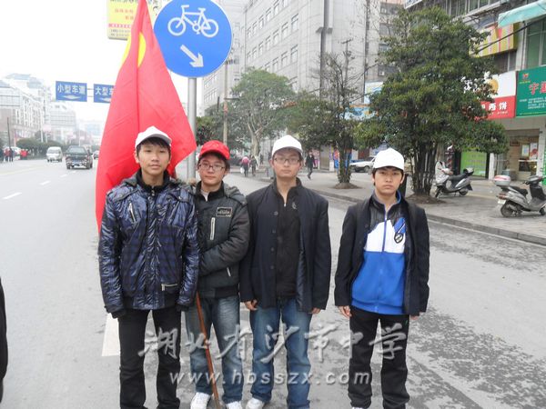 高一(4)班學生走上街頭開展"文明勸導崗"活動