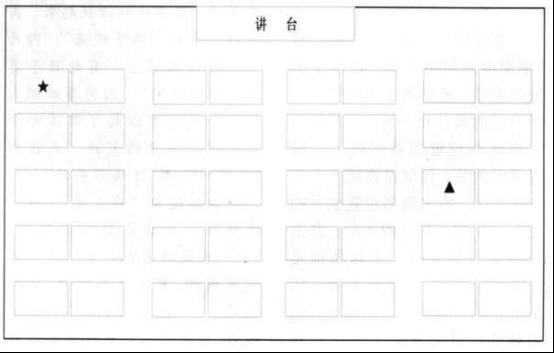 座位表也是課例研究中課堂觀察的重要工具。在聽(tīng)課前,觀摩教學(xué)的教師可以向任課教師要一份班級(jí)學(xué)生的座位表,以便在課堂觀察中利用座位表記錄班級(jí)中不同學(xué)生的學(xué)習(xí)情況。下面是一個(gè)班級(jí)的座位表: