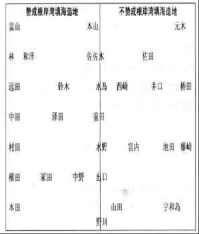 在這堂社會(huì)課上,學(xué)生們對(duì)“根岸灣的填海造地”產(chǎn)生了不同的看法。教師要求每位學(xué)生表明自己的觀點(diǎn)和立場(chǎng),于是第一次姓名牌位置圖就形成了。值得注意的是,即使站在同一立場(chǎng)上的學(xué)生,姓名牌的位置也可能是不一樣的。如上圖所示:富山是強(qiáng)硬的贊成派,宇和島則是堅(jiān)決的反對(duì)派,而佐佐木等人則是中立派。隨著研討的深入,姓名牌的位置會(huì)發(fā)生個(gè)性化的移動(dòng)。這種移動(dòng)表明學(xué)生們的認(rèn)識(shí)在發(fā)生改變,而認(rèn)識(shí)的改變及深化卻反映了學(xué)生的視野在不斷擴(kuò)展。同座位表一樣,姓名牌的使用也為課例研究研討學(xué)生的學(xué)習(xí)提供了事實(shí)材料的支撐。