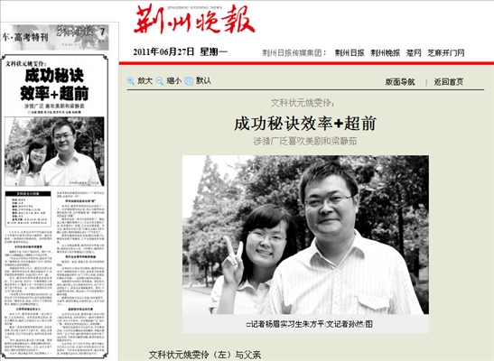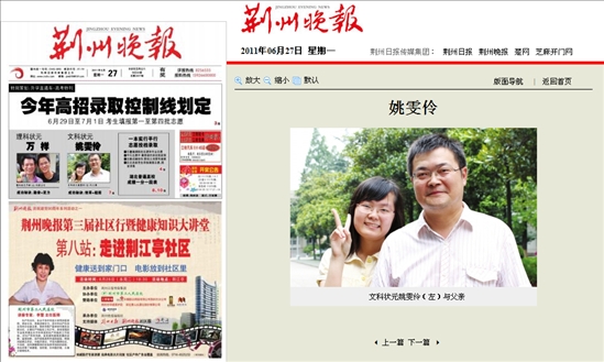 其實(shí),姚雯伶的理科成績(jī)也是很優(yōu)秀的。升入高中前,在沙市一中教物理的父親姚會(huì)希望女兒“繼承父業(yè)”,但是最后還是尊重了孩子的決定。這一決定讓姚雯伶在文科生中凸顯出優(yōu)勢(shì)。