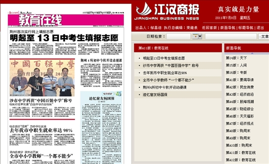 《江漢商報》報道我校獲"中國百強中學"稱號