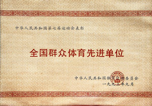 1993年09月在中華人民共和國第七屆運動會上被表彰為全國群眾體育先進單位