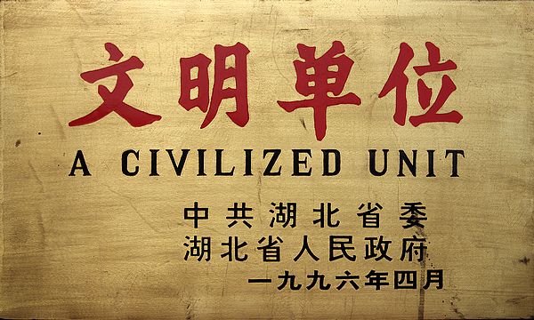 1996年04月被評為湖北省文明單位受省委省政府表彰