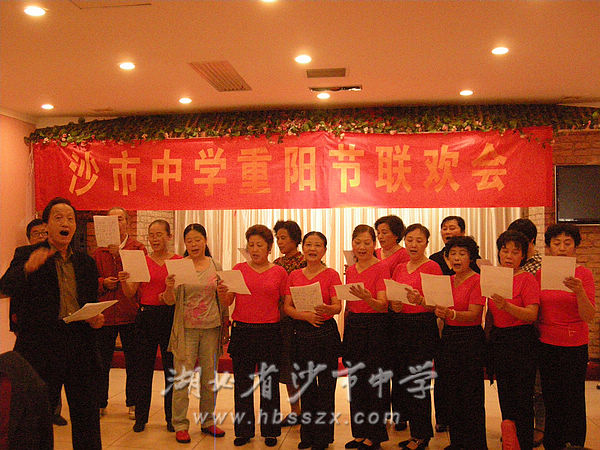 2011年重陽節(jié)之際,沙市中學(xué)組織離退休老同志在老天寶酒樓舉行聯(lián)歡會。聯(lián)歡會上,老同志們興致勃勃地表演了舞蹈、京劇清唱、詩歌朗誦、獨(dú)唱等節(jié)目。會后并舉行了晚宴。本次活動(dòng)由學(xué)校工會組織,學(xué)校領(lǐng)導(dǎo)鄧北平、黃煒、趙文華、朱勝祥、張志禮參加了聯(lián)歡。