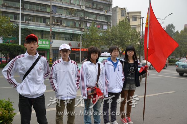 11月6日上午,高二(12)班學生在團委書記張珺和班主任葉世安老師的帶領下走上街路開展交通文明勸導活動。12班的同學熱情大方,積極主動,對來往的行人進行友好勸導,鼓勵行人遵守交通規則,文明交通,安全交通。