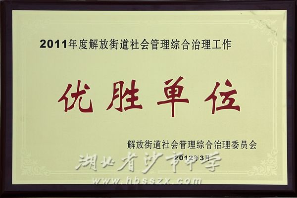 2012年03月被評為2011年度解放街道社會管理綜合治理工作優勝單位