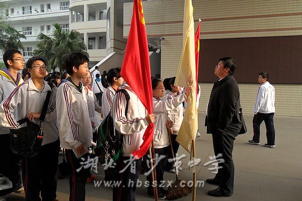 早上7點30分,同學們穿著整潔的校服,高舉團旗與校旗,在校團委書記張珺的帶領下來到烈士陵園。莊嚴的烈士陵園在晨氣的繚繞下顯得格外地沉郁,同學們整齊的步伐在寧靜的陵園中顯得特別地沉重。默默地拾級而上,同學們來到了高大雄偉的烈士塔前。重整畢隊伍,學生鄭啟鳴與向麒伊,走到隊伍前,為大家主持祭奠儀式。