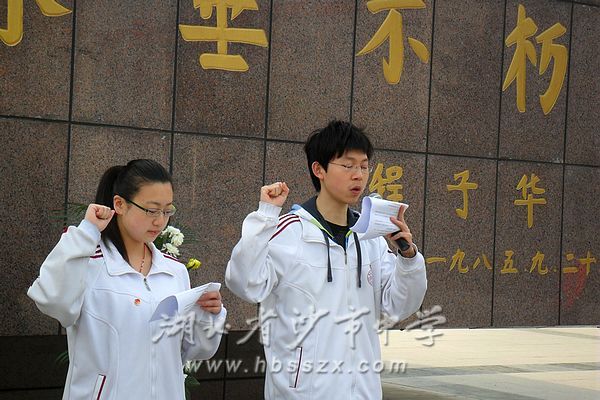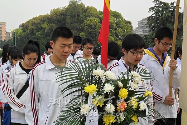 2012年4月3日,清明節前,湖北省沙市中學學生會60余名學生懷著對革命先烈的無限哀思來到烈士陵園舉行莊重的祭奠儀式,深切緬懷為民族解放而犧牲的仁人志士。