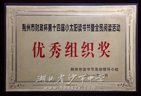 2011年06月獲荊州市財政杯第十四屆小太陽讀書節(jié)暨全民閱讀活動優(yōu)秀組織獎