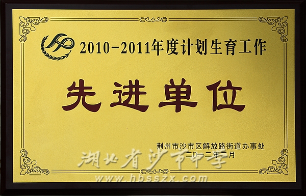 2012年02月榮獲2010至2011年度計劃生育工作先進單位稱號