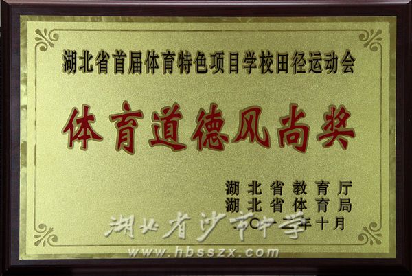 2012年10月獲湖北省首屆體育特色項目學校田徑運動會體育道德風尚獎