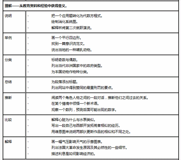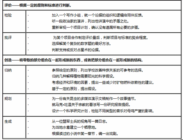 我們要真正設置好“知識與能力”的教學目標,就得領會這六個層次的認知過程維度的界定。我們參看下面圖示: