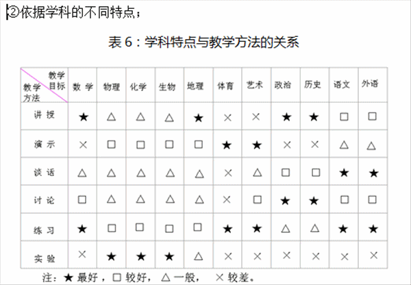 ⑥依據各種教學方法的職能、適用范圍和使用條件;