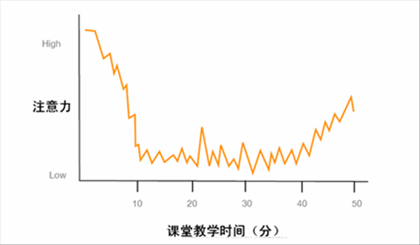 美國科學家梅迪納博士經過研究,發現學生在50分鐘的時間里,其注意力呈現不規則波動,由此提出了注意力10分鐘法則,并給出了相關建議,認為教法要多樣,教學策略要豐富,如課堂教學每10分鐘應講有關的故事、演示有關的視頻、開展有關的活動、進行互動作業、組織有關的游戲等,以此來豐富你的教學策略。