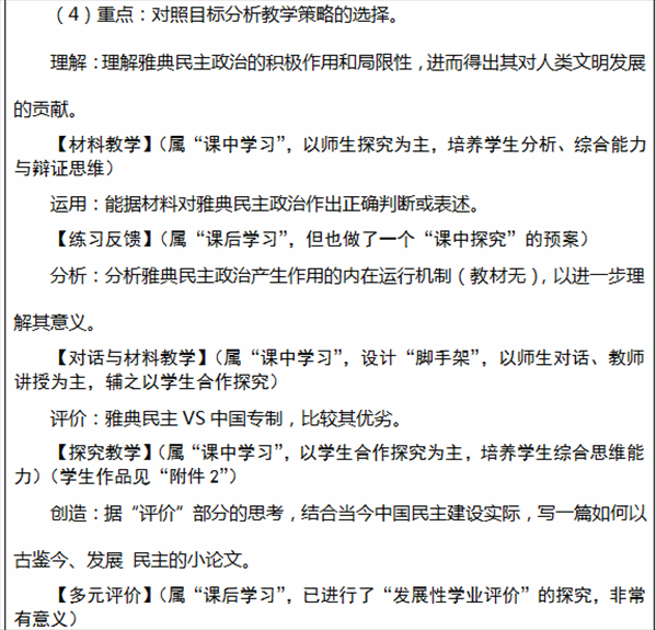 這里,我再回到《古代希臘民主政治》的例子,談一談我們在實踐中如何選擇教法來突破教學目標。我這里要強調的一點是我們在踐行科學與實證取向的教學觀時,仍然要堅持六個“三”的教學文化,尤其是三次學習、三種學法和三有課堂,這兩者之間并不沖突。