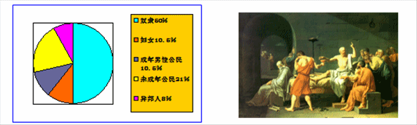 第三步:出示材料分析“民主之憾”(雅典公民人數占比、蘇格拉底之死)