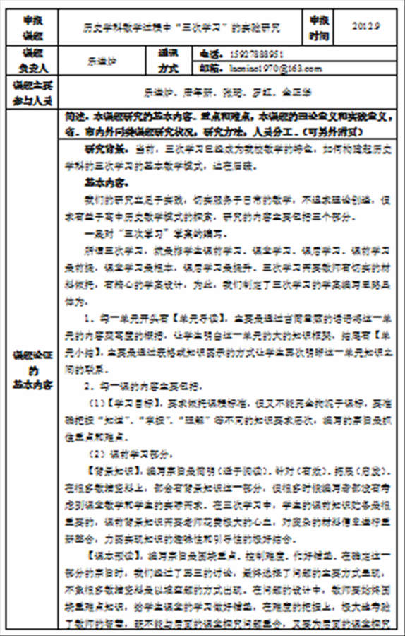 附件3:《歷史學科教學過程中“三次學習”的實驗研究》課題招投標申報表
