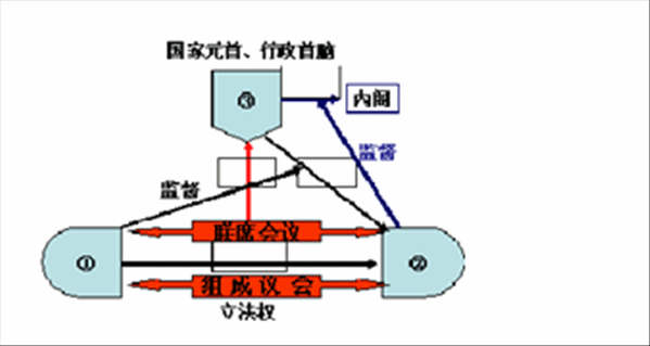 (參議院、眾議院、總統;選舉權、任命權、解散權、否決權)