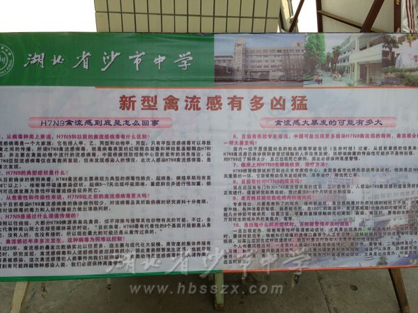 近日,來勢洶洶的H7N9禽流感逐漸擴散,多個城市受到禽流感的襲擊。為了防止學校受到流感病毒侵襲,保證師生的生命健康,4月10日上午,我校特召開行政會研究預防措施,制定《H7N9禽流感防控預案》,提請學校各部門一定要重視,并嚴格按照預案要求做好防范準備。隨后,我校組織各班級進行全校清潔大掃除,并做好消毒工作。制作《新型禽流感有多兇猛》的展板,對師生展開預防教育。從意識教育和行動方面采取全方位切實可行的措施,一定要把禽流感擋在校門之外!