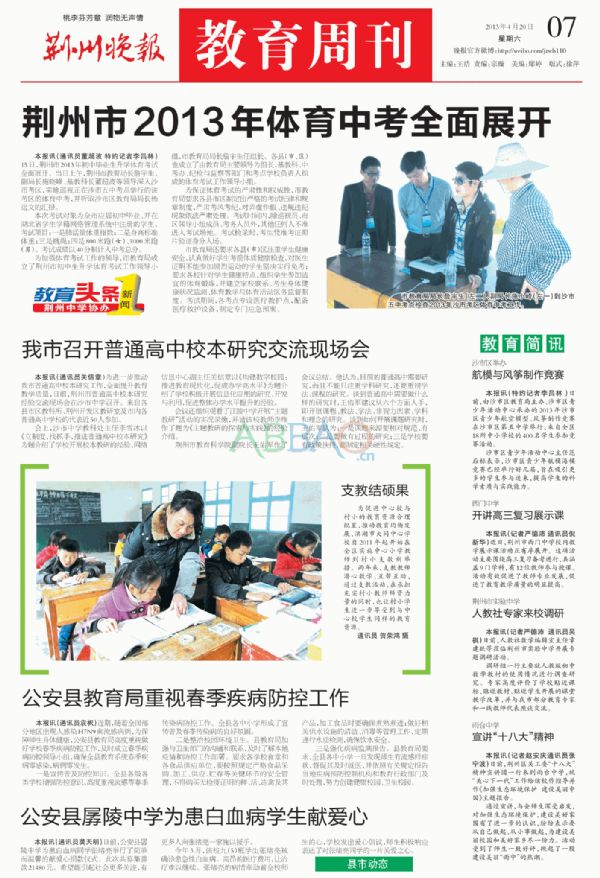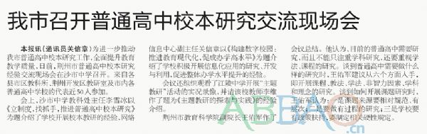 《荊州晚報》4月20日07版:我市召開普通高中校本研究交流現(xiàn)場會