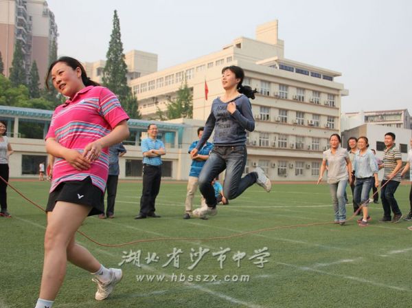 為了促進教職工身心健康,繁榮校園文化,倡導“每天健身一小時,健康工作三十年,開心生活一輩子”的理念, 5月21日下午,我校工會組織舉行了教職工跳長繩比賽。