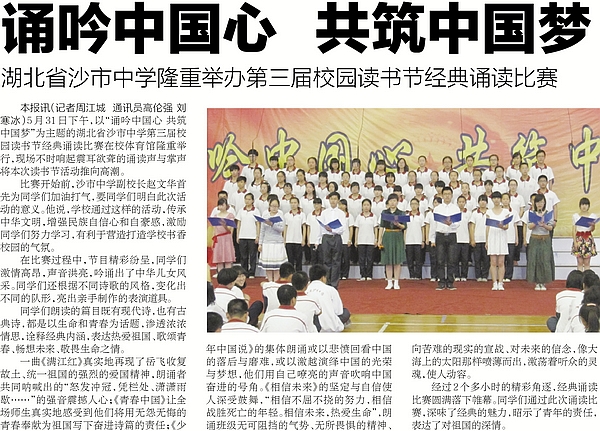 《楚天民報》6月4日第6版:誦吟中國心 共筑中國夢