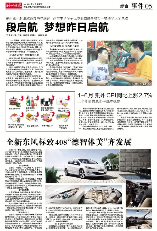 《荊州晚報》7月19日第5版:段啟航 夢想昨日啟航
