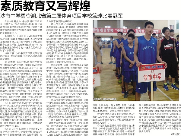 《楚天民報》7月22日第4版:素質教育又寫輝煌